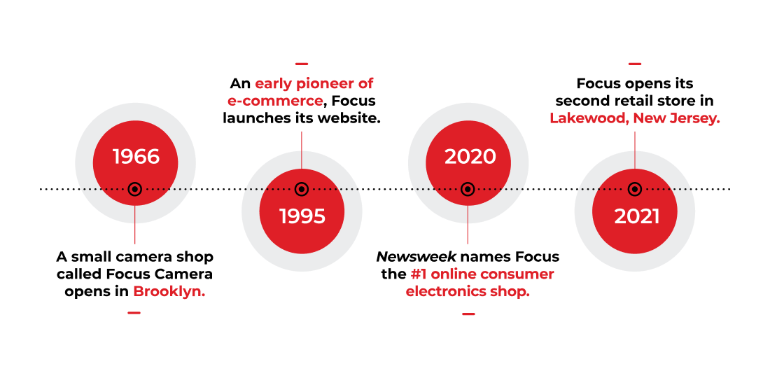 It all started with a little camera shop in Brooklyn. Founded by Abe Berkowitz in 1966, Focus has faithfully served the New York City Metropolitan Area for over half a century. In that time, we’ve built a tight knit community of photographers, videographers, musicians, and other creators passionate about reaching their goals.